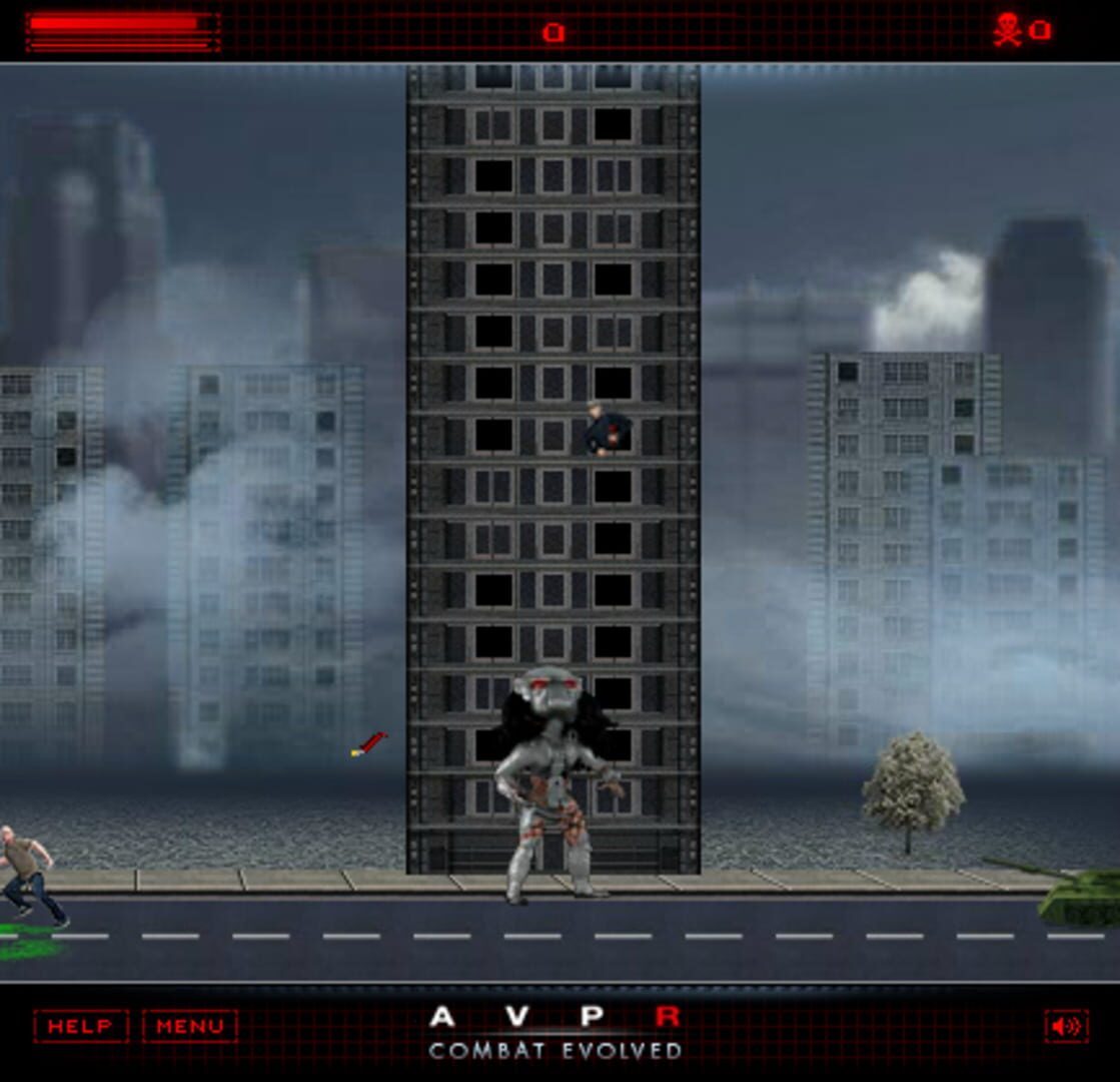 AVPR: Combat Evolved was a web game created to promote the DVD release of Aliens vs. Predator: Reqiuem movie. It is a Rampage clone that has you playing as either the Alien or Predator scaled up building scaling proportions.