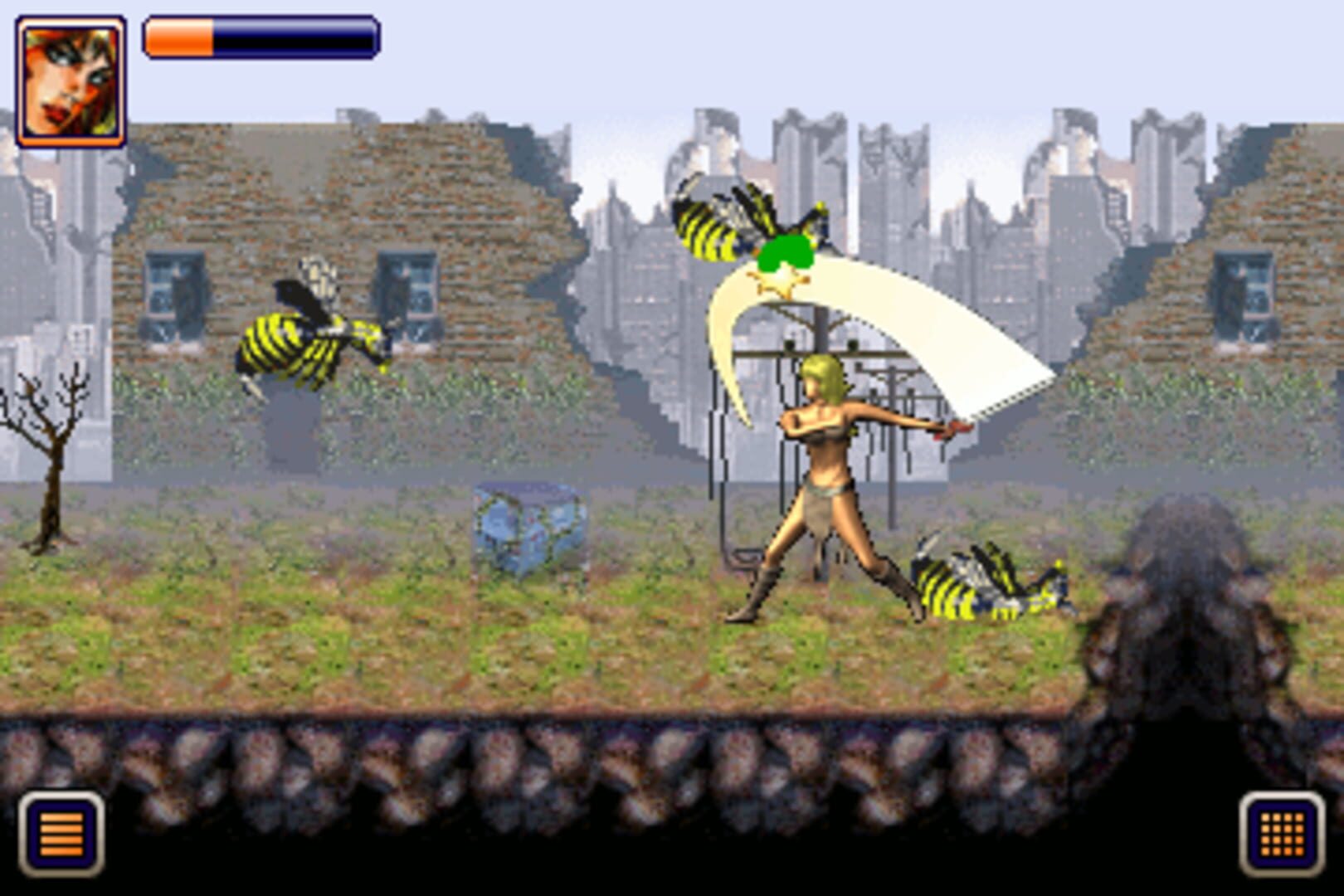 AXA is an action-adventure featuring three big levels, six different graphical settings, 50 rooms to explore and more than 20 items to interact with. While the player uses the direction pad to have AXA walk, jump, climb and fight her way freely through the scenes in 2D arcade style, an icon-based menu can be popped up to perform the puzzle-related tasks such as examine, use or combine things.