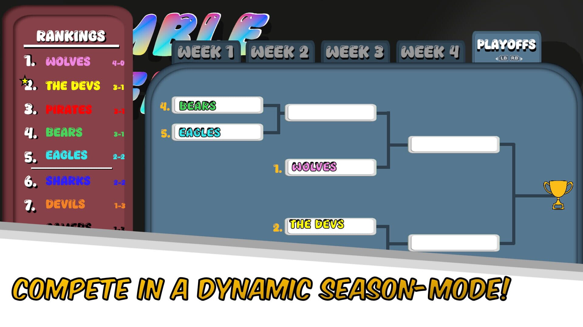 Fumble Freaks is a 5v5 football game that blends over-the-top ragdoll chaos with classic gridiron strategy. Compete with or against up to four friends where every match is a highlight reel waiting to happen.