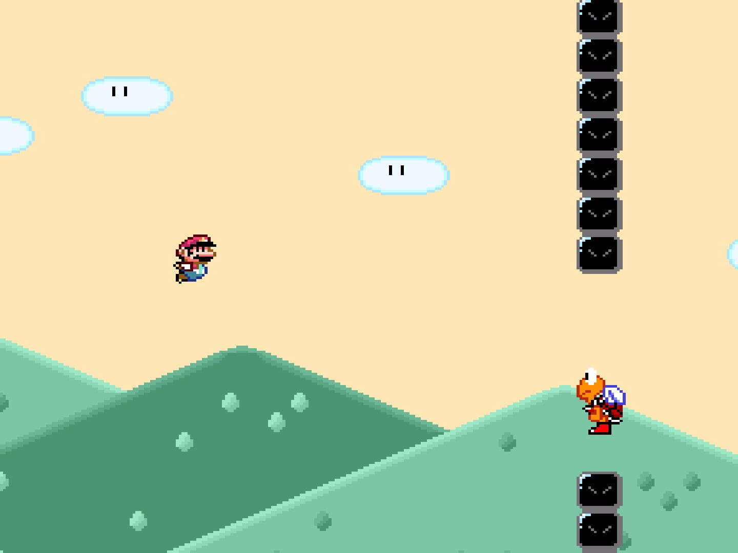 This hack represents the humble efforts of a foreigner to pay tribute to the Japanese hacks that thrilled and delighted him when he first took to romhacking. VIP and OTL; Kaizo and Kouhai; SUI and SIG–these and many others caught and held my imagination, and their influence is obvious in this hack (and I have tried to acknowledge my sources whenever possible). But, as always, the line between tribute and theft is a difficult one not to cross. It may be that the ghosts of old hacks and levels will resent the violence done to their mortal remnants. I am prepared for that.