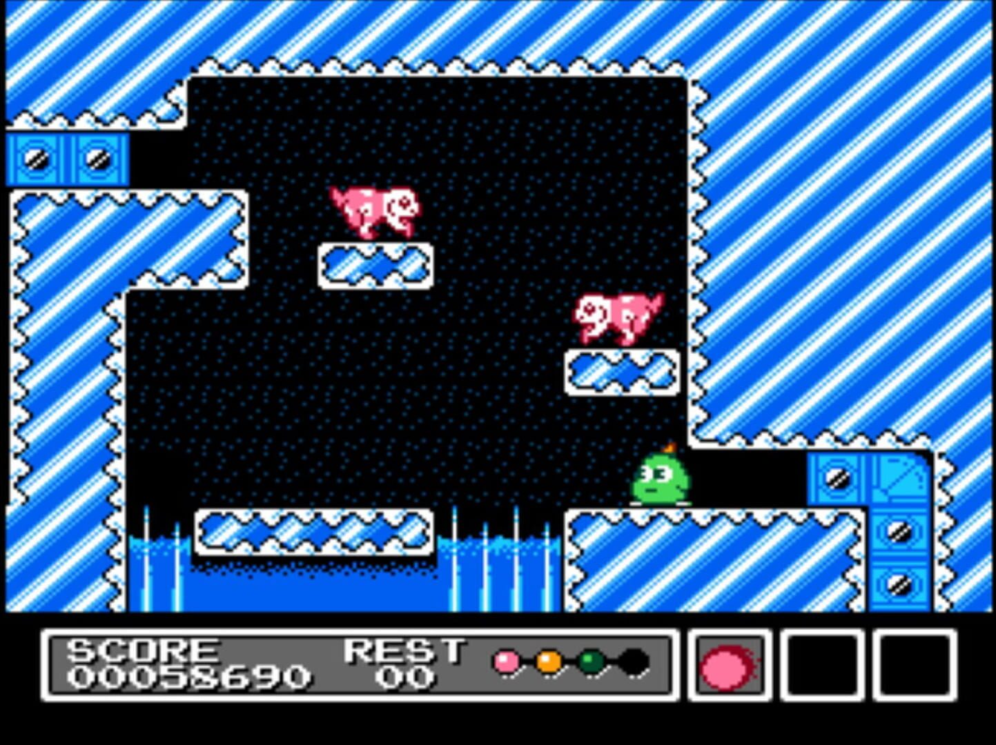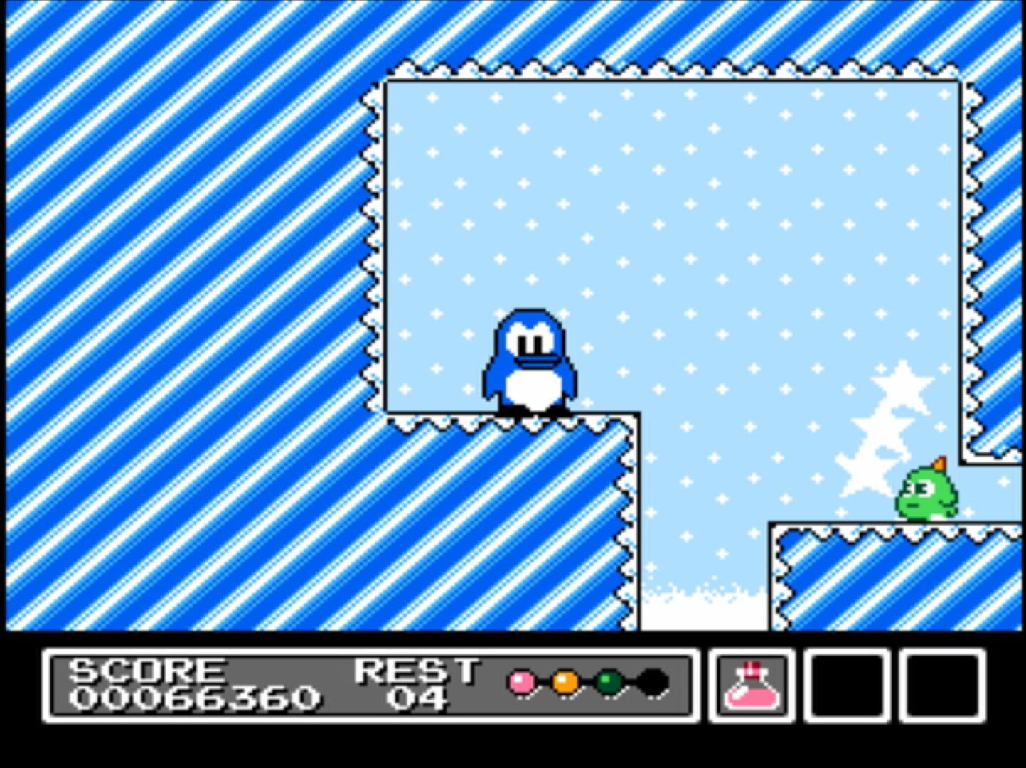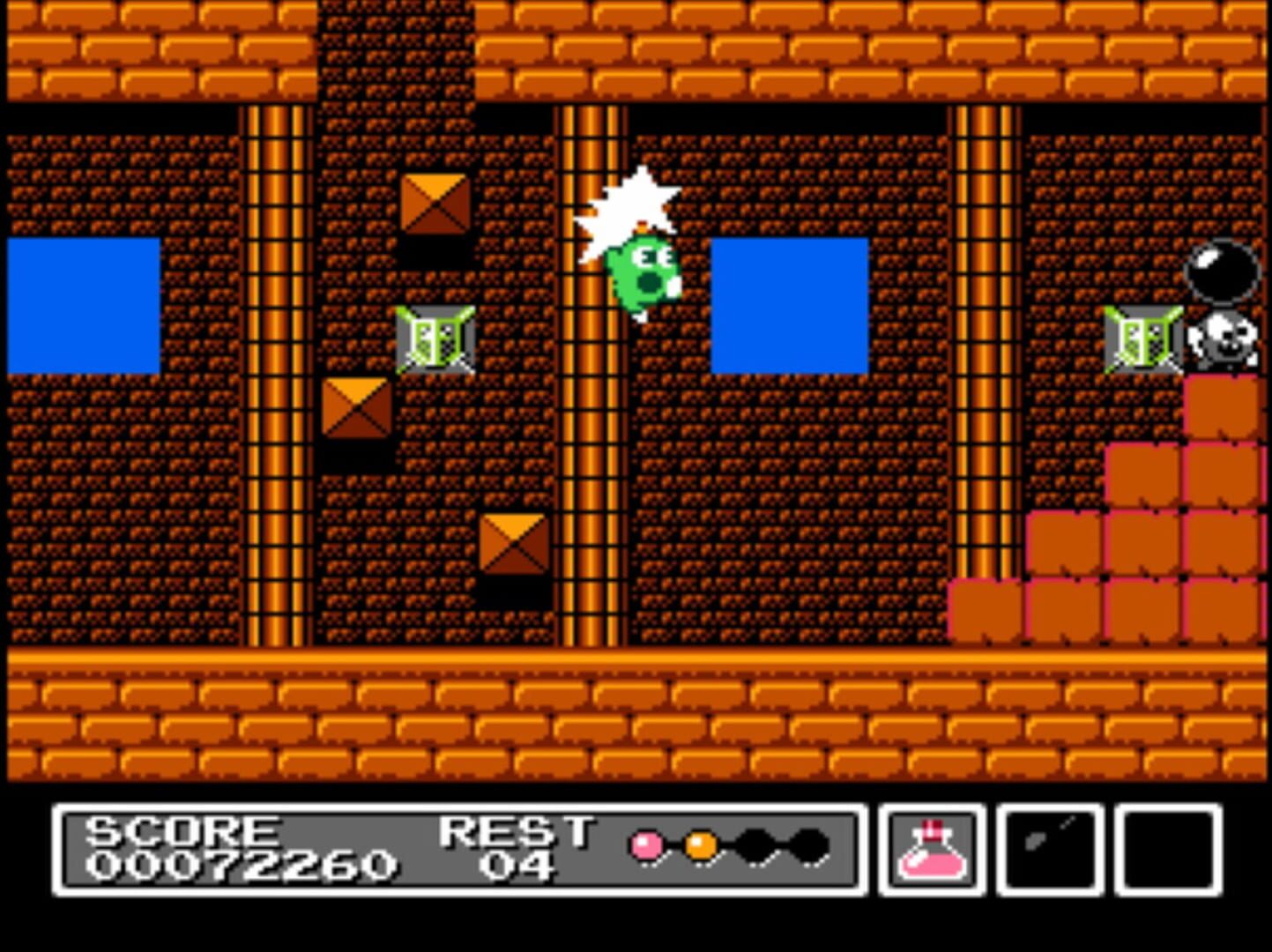 Gimmick is back in this all new, action packed adventure! It was several years ago that he captivated our hearts as he set out to rescue his owner from the toy dimension and its ruler, Shadow. In this game, the little girl is now a grown woman with a child of her own, Maddie. When she feels Maddie is old enough, she gives her Gimmick to take care of. As Maddie sleeps, the evil Shadow returned, kidnapping Maddie and taking her to the toy dimension. Gimmick must go back to the toy dimension and rescue Maddie from the evil clutches of Shadow. Join Gimmick as he fights through seven all new levels, packed full of new enemies and new bosses! Will Gimmick rescue his new owner, or will Shadow get his revenge?