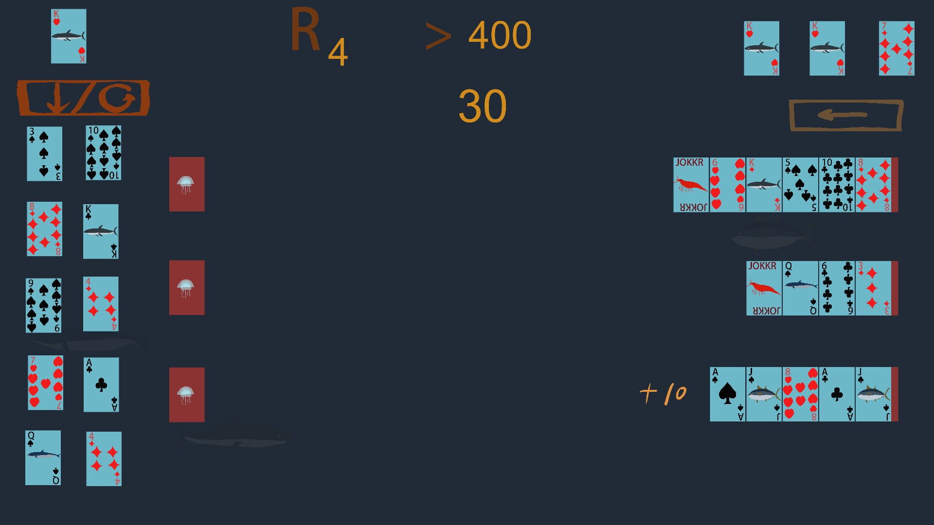 This is a tower defense game played with playing cards, where defensive cards are used to eliminate attacking cards and receive score rewards.