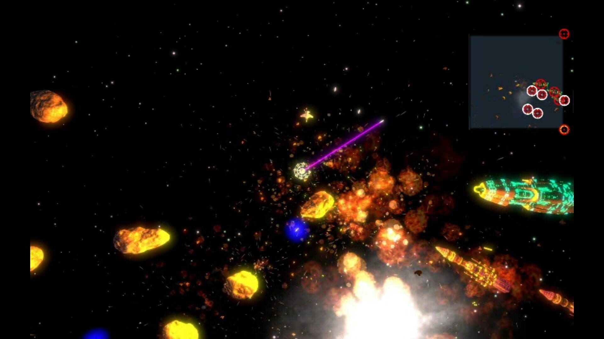 Annihilate the Sarkad and Onton Fleets in this arcade style galactic battle game. Gather resources to improve your craft by farming asteroids or destroying enemy craft/basestations! Over 20 increasingly difficult levels to complete the game!