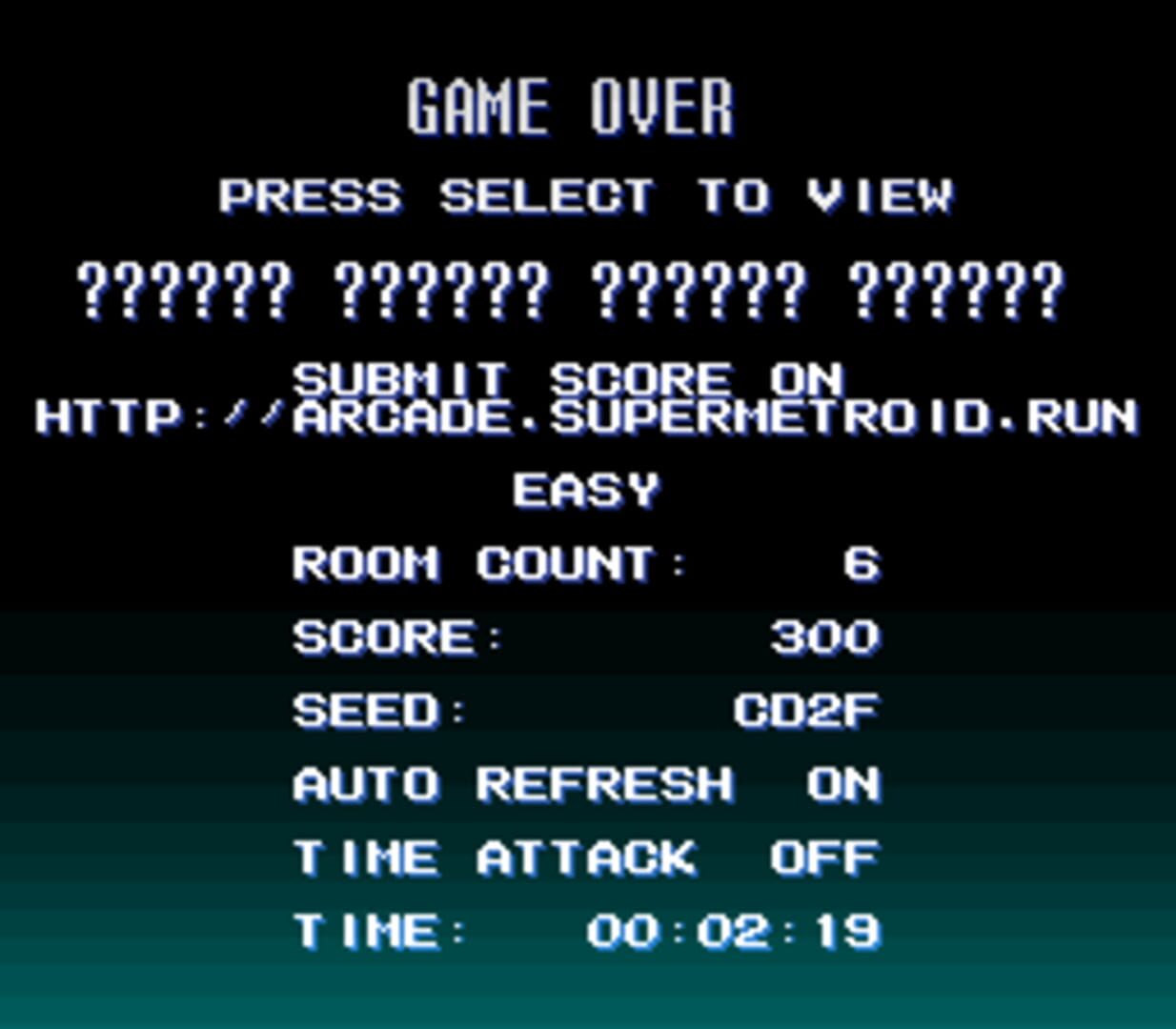 A ROM hack of Super Metroid that turns the game into a replayable “arcade” game with kills based points as you go through random rooms and try to rack up a highscore. Multiple difficulties are offered, and it can be played with a time limit, endlessly, or to a set number of rooms cleared.
